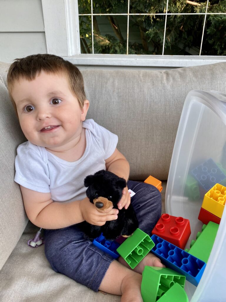 Jane: The purpose of working as an OT with any child and their family is to meet them where they are and walk alongside them in their journey. The same applies to PT, speech, feeding, and other early support therapies. We bring our expertise in developmental skills like posture, movement, feeding, social interaction, and play. The families bring their love, knowledge, and priorities. Especially with rare conditions, the family typically knows more than the therapist about the condition. We work together to help the child find meaning and joy in their life. The ways that a child with a serious illness finds meaning and joy may look different, but the goals are the same.