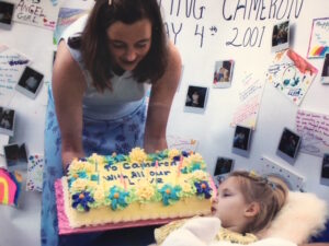 (photos of Cameron on her first birthday and her second birthday)