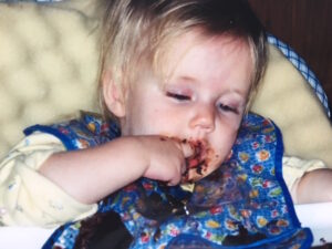 And then her baseline started to shift down. Almost as soon as we received her diagnosis at six months, her normal began to slip backwards, so slowly and so quietly that at first we didn’t notice: no longer could she sit up by herself; no longer could she roll over. On her first birthday, she could only just bring her birthday cake to her mouth – Goodness, she loved that cake! And shortly after that, she stopped being able to use her hands to bring toys to her mouth. I can’t remember when we stopped putting her in her exer-saucer. At some point, we must have realized she couldn’t keep herself upright anymore and we didn’t place her in it anymore. I wish I could remember if I actually registered this fact. If I did, it must have hurt because she had really enjoyed being in that exer-saucer.