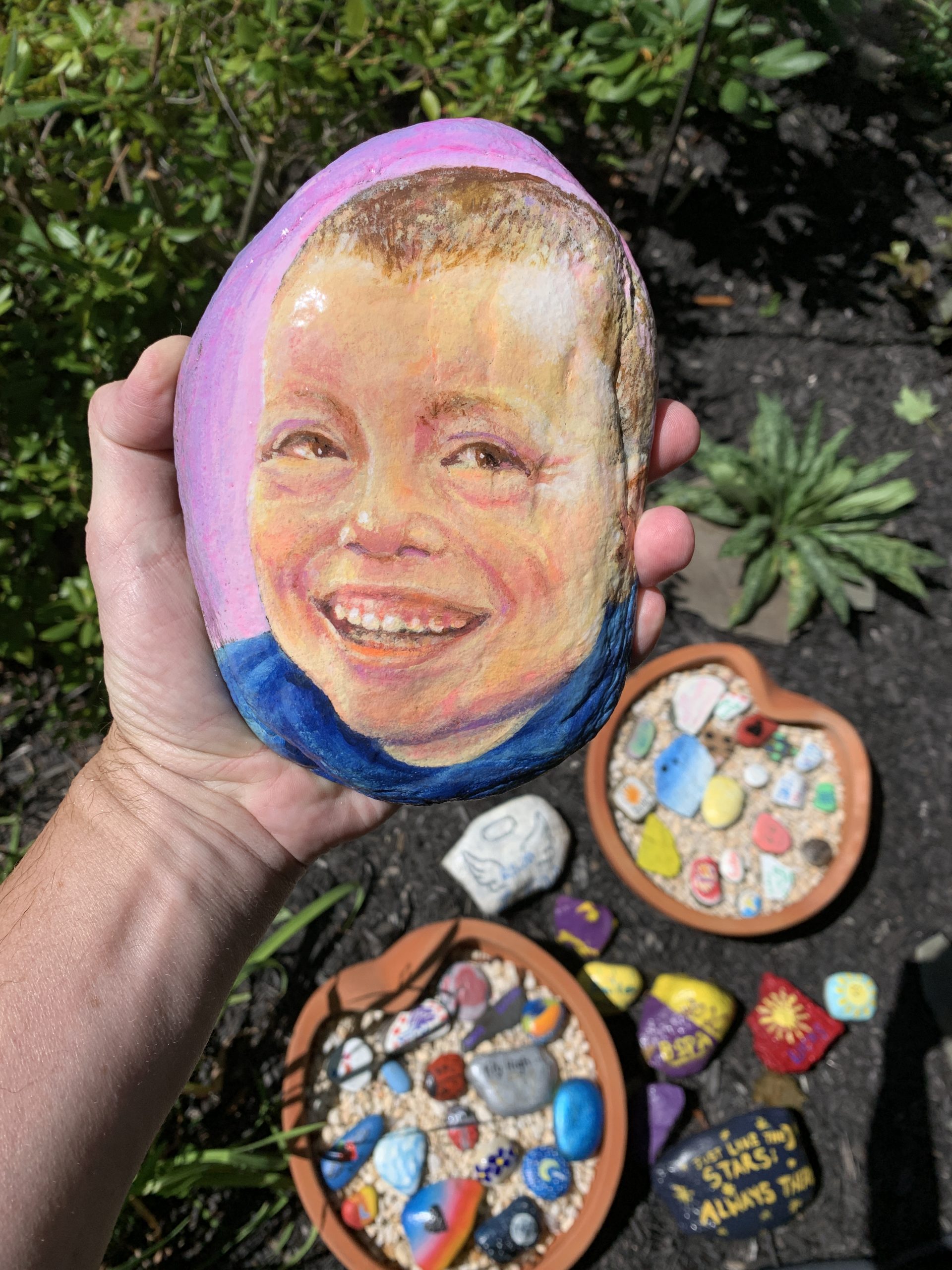 For most of a year on our dry-erase board to-do list we had written “Lucas plan”. This was coded language for “plan Lucas’ funeral”. Since we were not active in any church, we knew we couldn’t rely on their structures and ceremonies. Like Lucas himself, his funeral would be one of kind. We intended to craft it ourselves. Despite these intentions, we never got very far beyond vague plans. Eventually we erased it from the to-do list still undone rather than let it grow ever more macabre. And then, as it turned out, Covid had one more cruel joke to play. Death during a pandemic will waylay even the best of funeral plans. The chance to gather loved ones and find comfort with them? Covid denied us most of that too. Friends and family did find other more socially distant ways to reach out. Dozens of small rocks were painted as Lucas memorials and placed on our porch. And thoughtfully prepared meals fed us for six straight weeks.