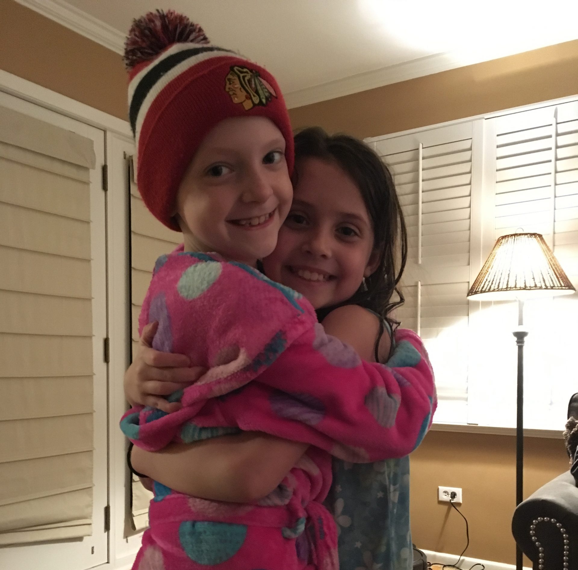Our trio spoke to both Lauren and Emma’s classes. I started off asking the kids who knew Lauren or Emma from kindergarten, first grade, or maybe from soccer. I explained that Lauren got sick over the summer and that while she was the same person, she may look different than they remembered. Cancer was a strong sickness, I told the class, and Lauren needed really strong medicine. And that while the medicine would help, it made her stomach upset and made her hair fall out. At this point, the room got very quiet. I told them that it was normal to want to see what Lauren looked like, and it was okay to look. I reinforced that Lauren was still Lauren and she was just like them, a little excited and a little scared about starting a new school and making new friends. I told them cancer wasn’t contagious. They couldn’t get it by touching, sitting near, talking, or playing with Lauren or Emma. That wouldn’t happen. I promised.
