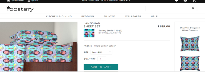 Spoonflower also has two sister companies, Roostery, where you can have, sheets, pillows, tablecloths etc. made for you.