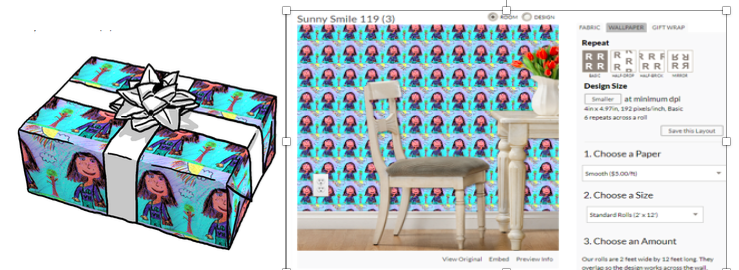As a bereaved mother, Spoonflower allows me the experience of creating something new “with” my daughter Lydia who died several years ago. I have taken her artwork and created canvases and wrapping paper. I may order the wallpaper in the future. This is a way that she and I can do a project together, even though we are no longer together.