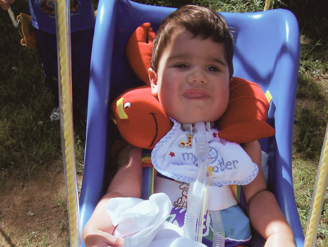 Tracheostomy or “trach” is a surgically created opening in the front of the neck and the trachea, into which a tube is placed to keep the airway open. Some children will breathe more easily with the help of a tracheostomy tube, but others will experience limited benefit as their underlying disease progresses. Some will have a trach if a decision has been made to use ongoing home ventilation. Some families initially rely on CPAP or BiPAP as a way to keep their child comfortable while they consider the tracheostomy option.