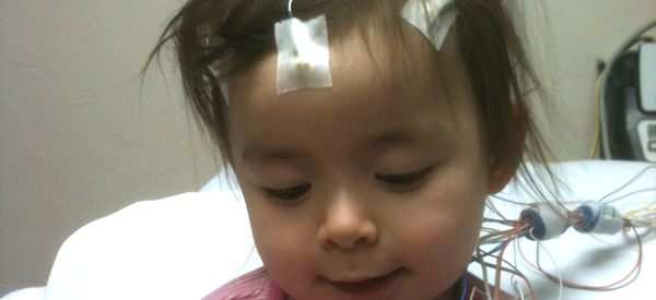 The neurologist may also assess seizure activity by using a test to measure electrical activity of the brain. The electroencephalogram (EEG) is one such test. Small round discs connected to wires (leads) are pasted to the scalp. The leads will not cause pain, but the process of applying them can be long and stressful for a child who does not understand the process. The test can take 60-90 minutes. Sometimes a longer EEG, commonly called a continuous EEG (cEEG) or Long Term Monitoring (LTM) in an Epilepsy Monitoring Unit (EMU), will be suggested. These tests include video monitoring to record your child’s movements and are conducted in a hospital setting. It is common for the tests to take at least 24 hours, but it can take up to a week depending on what data is needed.
